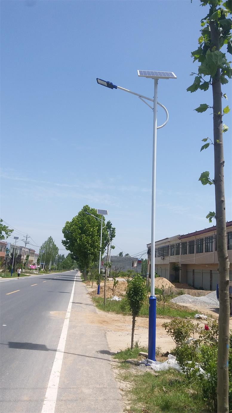 太陽能路燈是采用多晶太陽能板供電,免維護磷酸鐵鋰電池儲存電能,超高亮LED燈具作為光源,并由智能化充放電控制器控制,用于代替傳統電力照明的路燈。